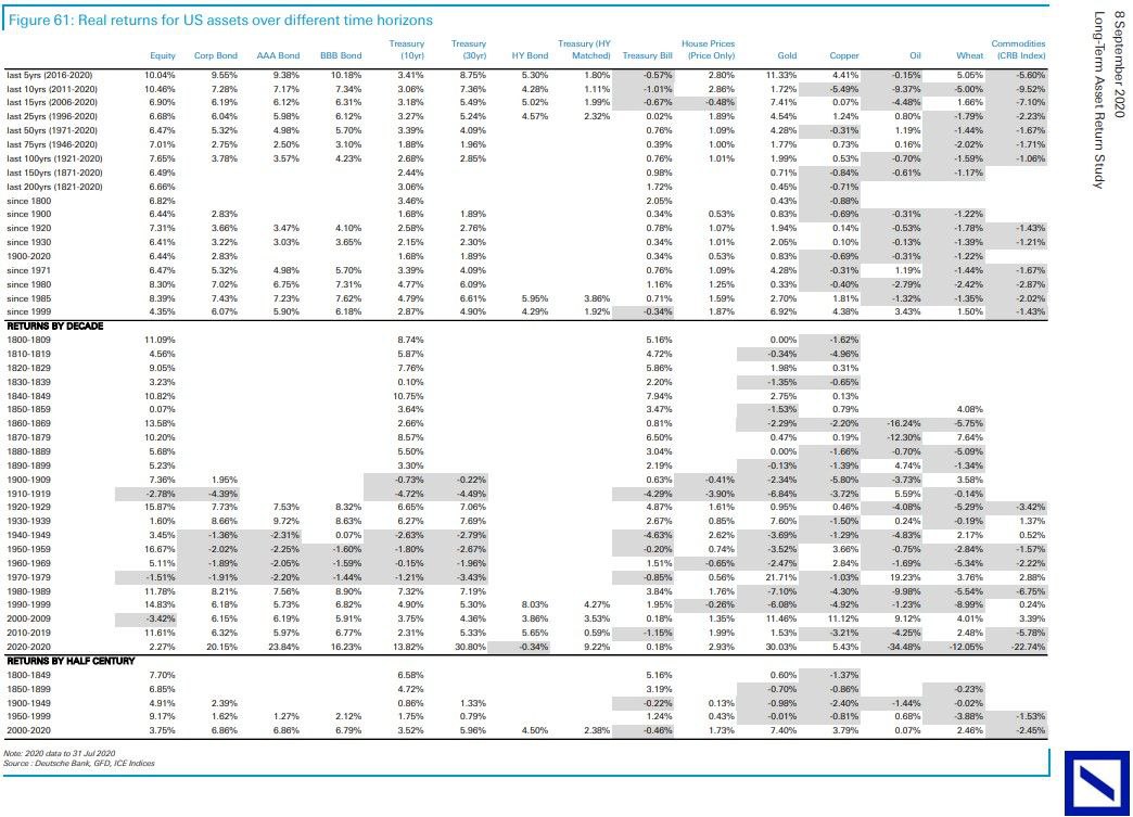 Дойче Банк выкатил крутейшую табличку по доходности классов активов за 200+ лет на разных временных горизонтах