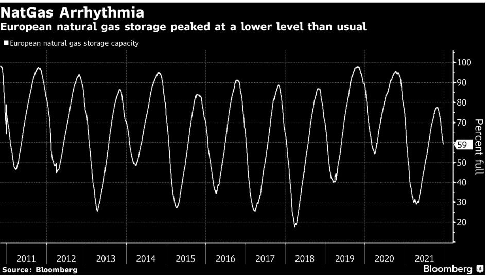 Не сразу ясно, кто виноват, но Европа вступила в эту зиму с гораздо меньшим количеством природного газа в хранилищах, чем обычно.
