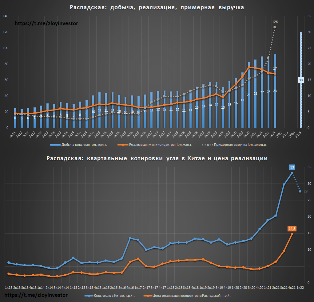 Распадская производственный отчет за 21г. - рост добычи и рекордные цены