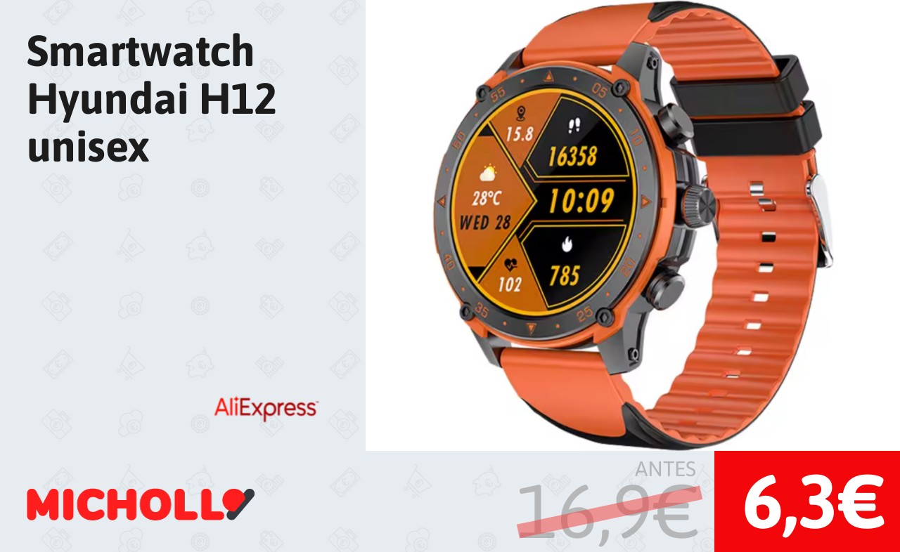 🔹 Smartwatch Hyundai H12 unisex solo 6,3€❗️❤️ (PVP: 16,9€)
