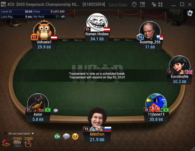 Сегодня из необычного 600$ WSOP NL дипстек, а так по старой схеме, 210+525 пло, фазы, турики подешевле, средний нл.