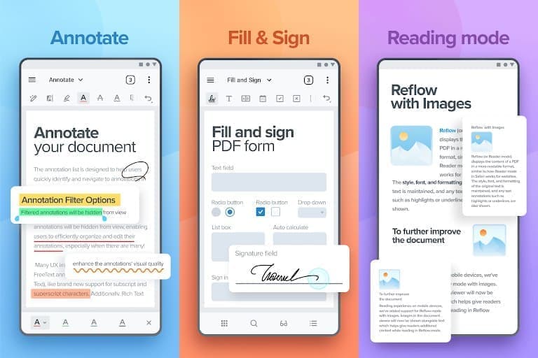 Overview : Xodo is an all-in-one PDF reader and PDF annotator/editor. With Xodo, you can read, annotate, sign, and share PDFs and fill in PDF forms, plus sync with Google Drive, Dropbox and OneDrive.
