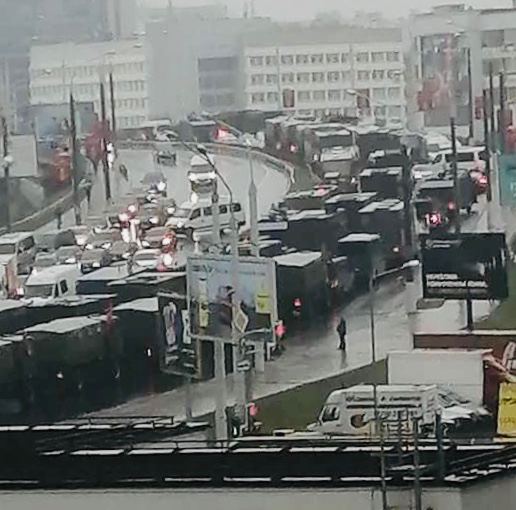 Конечно, это не означает, что мирные формы в одночасье умерли. Сегодня вечером, когда автозаки еще стояли вдоль Притыцкого и Кальварийской, люди уже договаривались снова выйти на улицы тем же вечером. И вышли. Гораздо больше, чем после традиционного воскресного марша. Сцепка стоит даже возле сакрального места - стелы. Про районы и говорить нечего. Перекрывают дороги - во многих районах. Водители яростно сигналят.