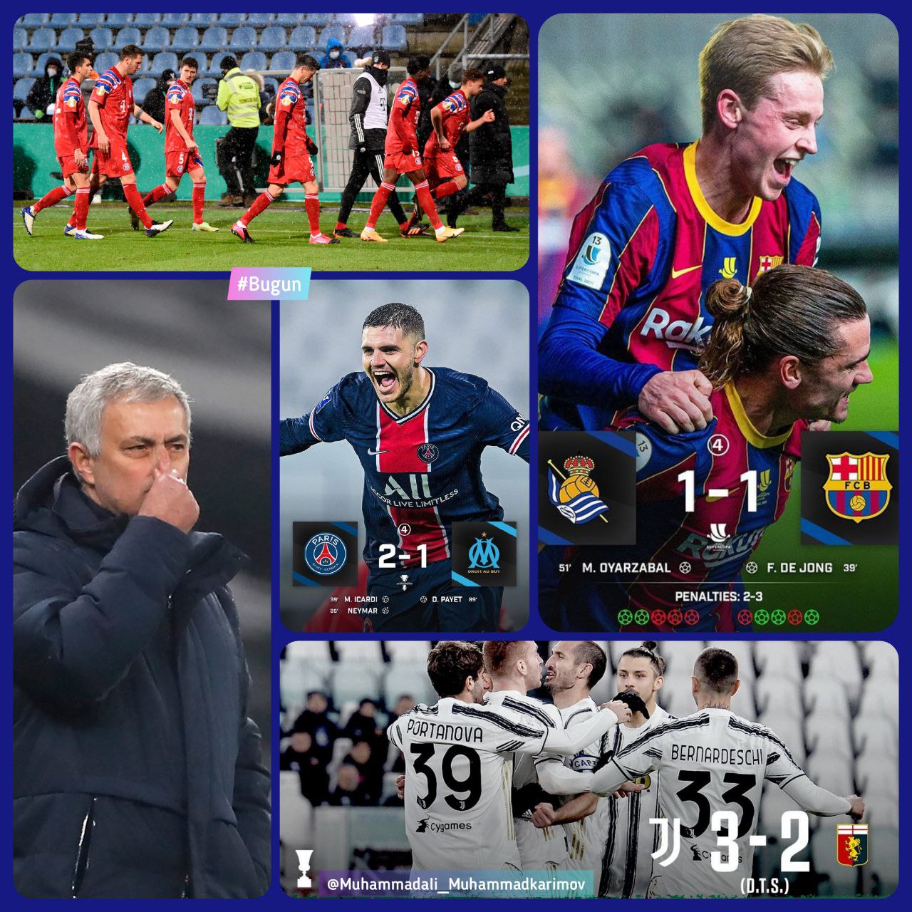 Messisiz "Barselona" esa Ispaniya Superkubogida "Real Sosedad" bilan to'qnash keldi. Bu o'yinning asosiy vaqti 1:1 hisobida yakunlandi. Penaltilar seriyasida darvozabonlar katta sahnaga chiqishdi. "Barselona" finalda! El-klassikoga yaqinlashyapmiz...