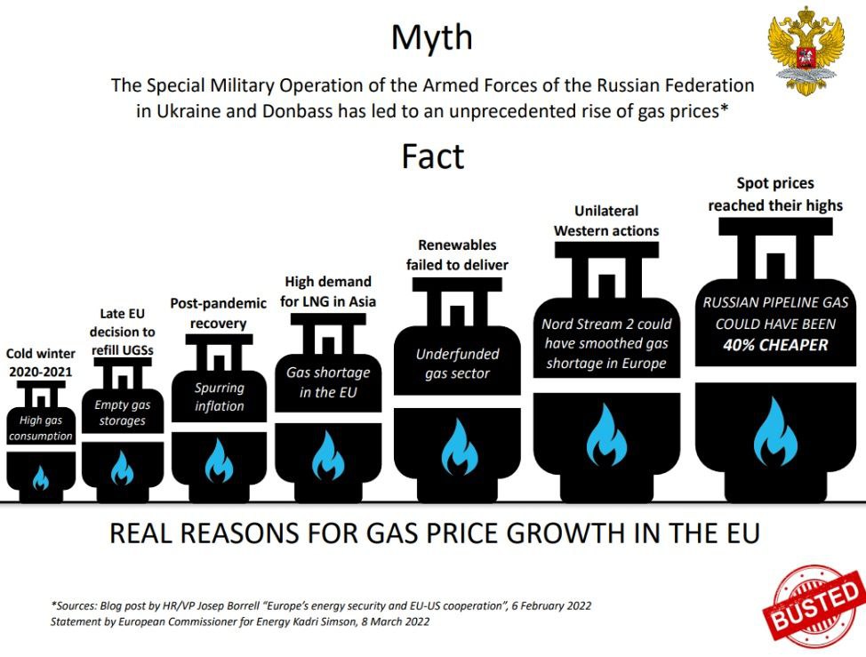 The Special Military Operation of the Armed Forces of the Russian Federation in Ukraine and Donbass has led to an unprecedented rise of energy prices (Source: Statement by European Commissioner for Energy Kadri Simson, 8 March 2022).