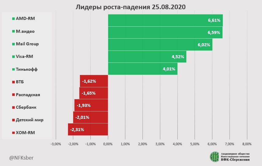▫️Несмотря на общее падение росли котировки М.Видео. Причиной для позитива стала информация о росте объемов продаж за 1 пол. 2020 г. на 32% при сопоставлении год к году. Рост спроса на технику обусловлен введенными ограничительными мерами в связи с пандемией и увеличением доли людей, работающих удаленно.