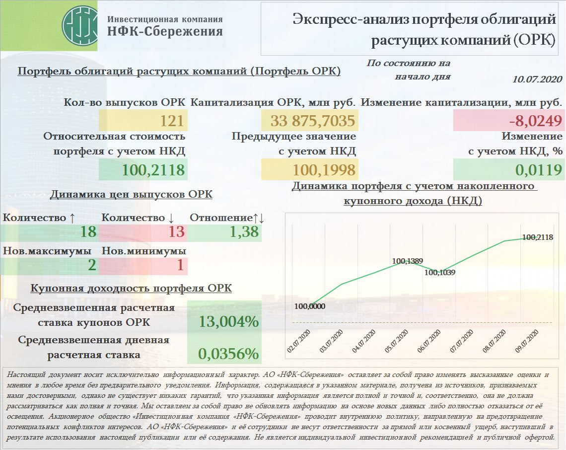 С июля текущего года АО «НФК-Сбережения» начало отслеживать динамику модельного портфеля облигаций растущих компаний (портфель ОРК) 📈