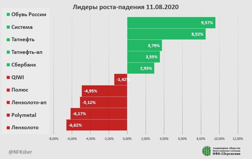 ▫️На фондовом рынке 12.08.2020 продолжилось ралли, поводом для которого стала новость о созданной вакцины от COVID-19. Особо отличился Аэрофлот, чьи акции взлетели при появлении информации об отмене коротких позиций по акциям компании. Внеочередное собрание акционеров Аэрофлота привело к приостановке коротких продаж с 13.08.2020 на Московской бирже.