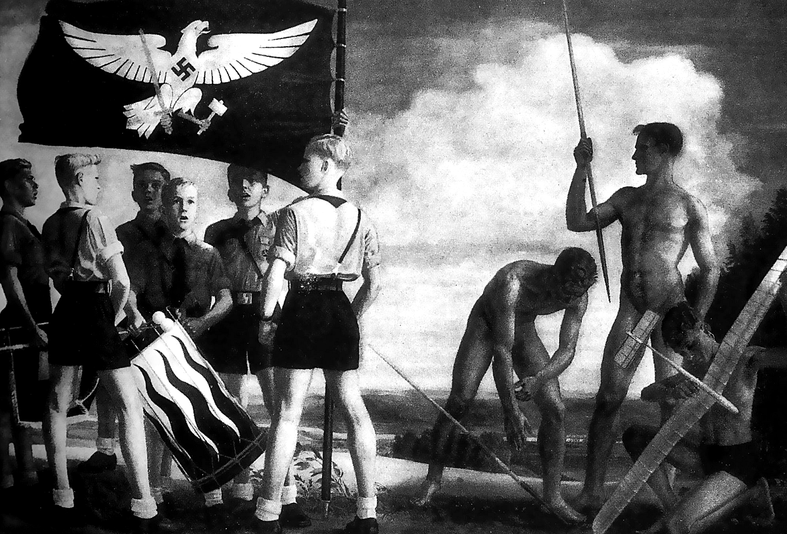 «Моё учение тяжело. Слабость должна быть выбита из них. В моём Орденсбурге [учебный лагерь для молодёжи НСДАП, прим. Филфот] вырастет юноша, перед которым весь мир отступит. Энергичный, властный, бесстрашный, сильный юноша - вот что мне нужно. Молодость должна быть всем этим. Он должен быть безразличен к боли. В нём не должно быть никакой слабости. Я хочу ещё раз увидеть в его глазах блеск гордости и вольности хищного зверя... Таким образом, я уничтожу тысячи лет одомашнивания человека. Тогда передо мной будет чистый и благородный природный материал. С его помощью я могу создать "новый порядок"».