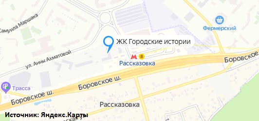 Жилой комплекс строится в рамках ТПУ «Рассказовка» в поселении Внуковское (Новая Москва), рядом со ст. м. «Рассказовка».