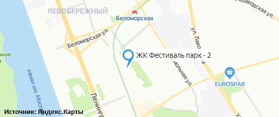 Новостройка возводится в Левобережном районе Москвы на улице Фестивальная, неподалеку от ст. м. «Речной вокзал» и «Беломорская».