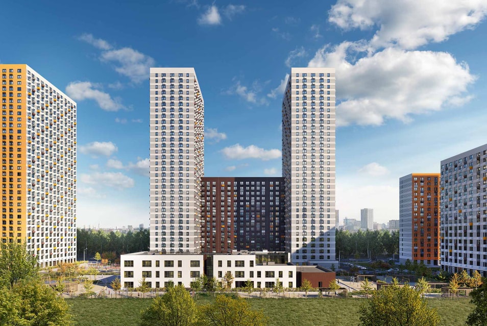 Проект включает в себя 15 жилых домов, школу, детский сад, подземные и наземные паркинги.