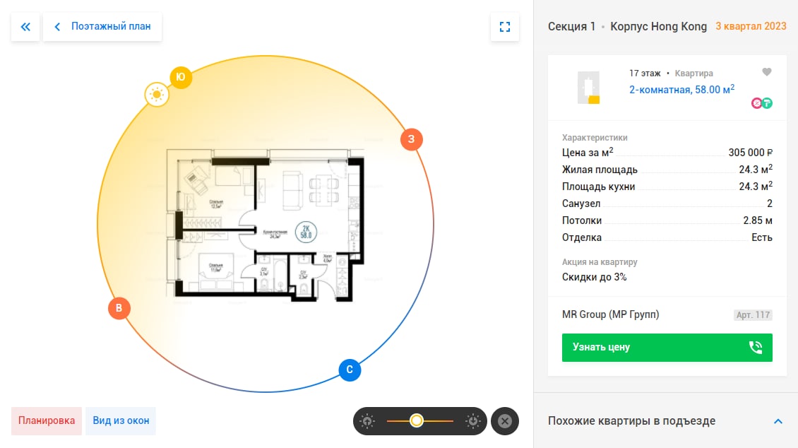 Посмотреть планировки можно по ссылке. Не забудьте проверить инсоляцию и виды из окон, особенно, если выбираете высотный корпус!
