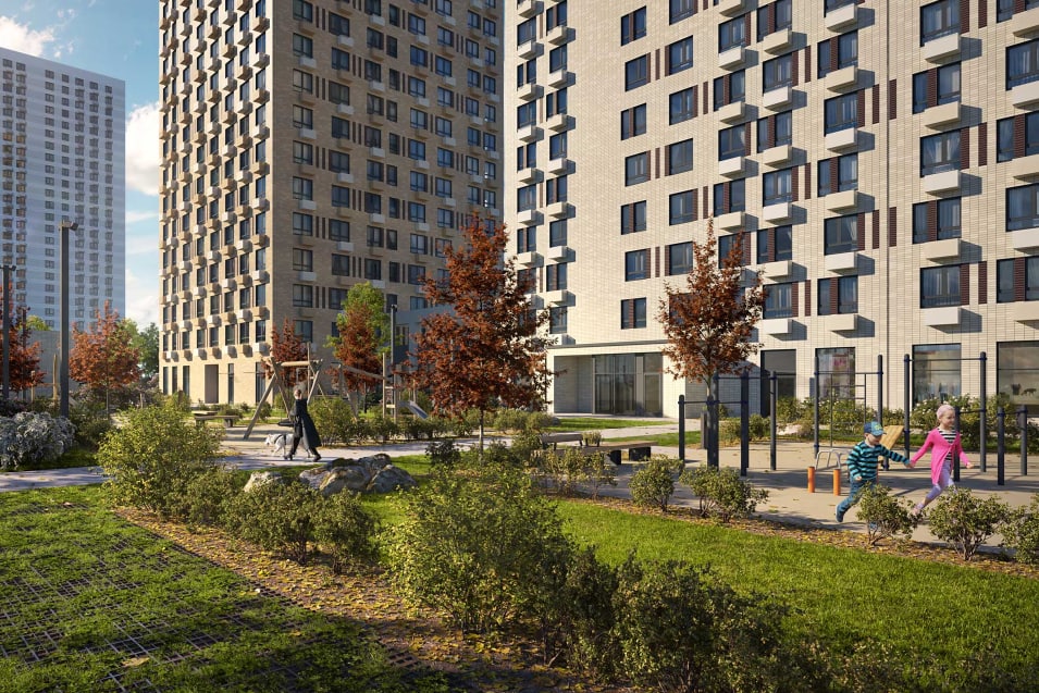 Помимо жилья здесь появятся два детских сада, школа, коворкинги, кафе, магазины, объекты сферы услуг на первых этажах домов. А на территории ЖК создадут прогулочные бульвары, дорожки для велосипедистов, установят современные детские игровые комплексы.