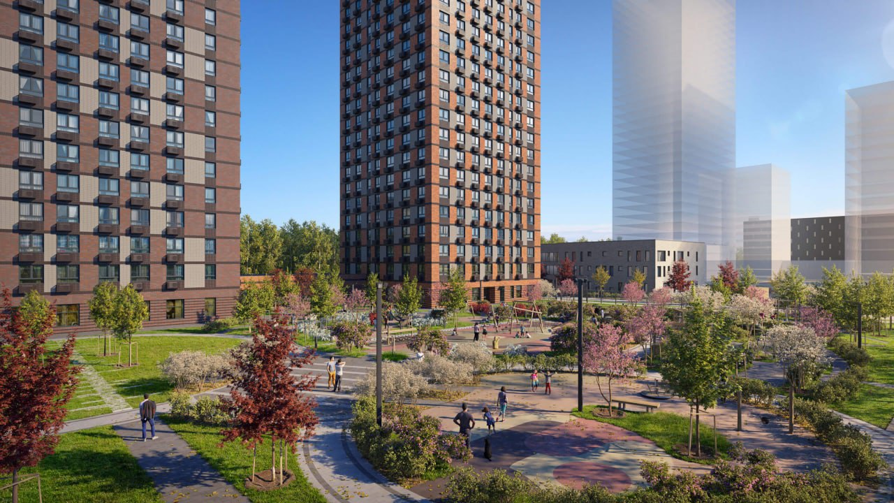 В пресс-релизе проект характеризуют, как небольшой и уютный: всего 4 корпуса с переменной высотой — 28, 33 и 38 этажей. Из инфраструктуры будет подземный паркинг, детский сад, начальная школа. И, конечно, фирменный двор-парк.
