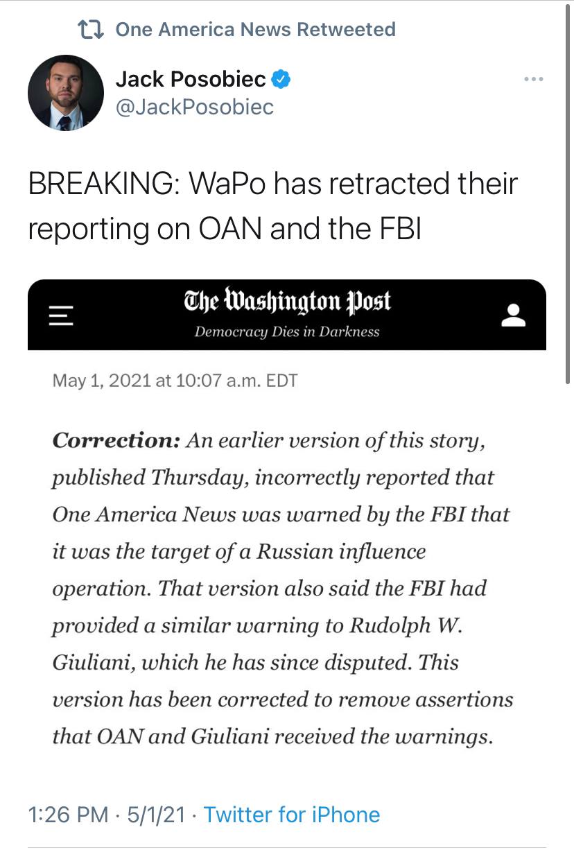 UPDATE: The Washington Post has retracted the FALSE CLAIMS it made about OANN