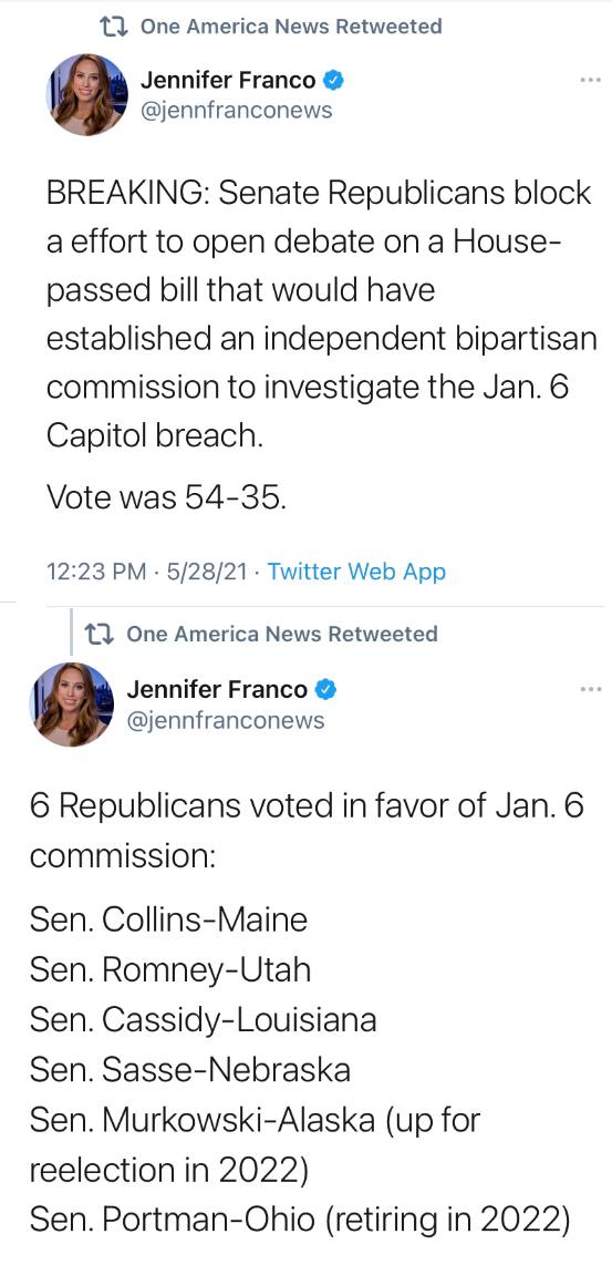 Senate Republicans block Jan. 6 commission, 6 Republicans vote in favor