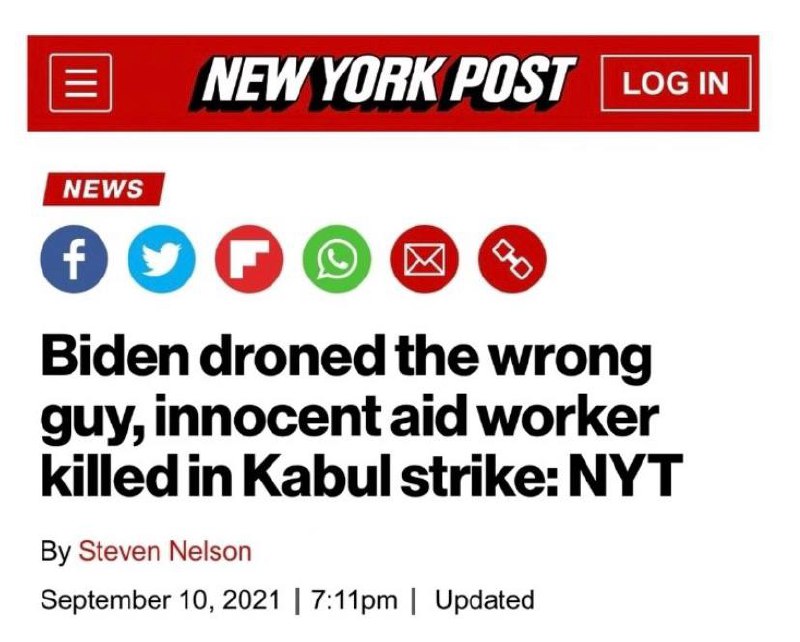 They did this strike quickly, in order to show they are tough. Instead, they killed a USAID worker and many children. This is what happens when you have grossly incompetent people at the helm. The Afghanistan tragedy will further mark what should have been an honorable and dignified September 11th. The Administration’s surrender will go down in infamy.