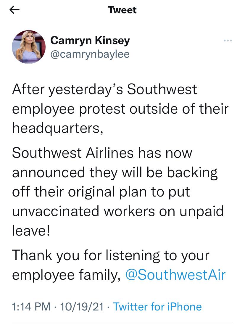 Southwest Cancels Plan to Place Unvaccinated Workers on Unpaid Leave in Dec.