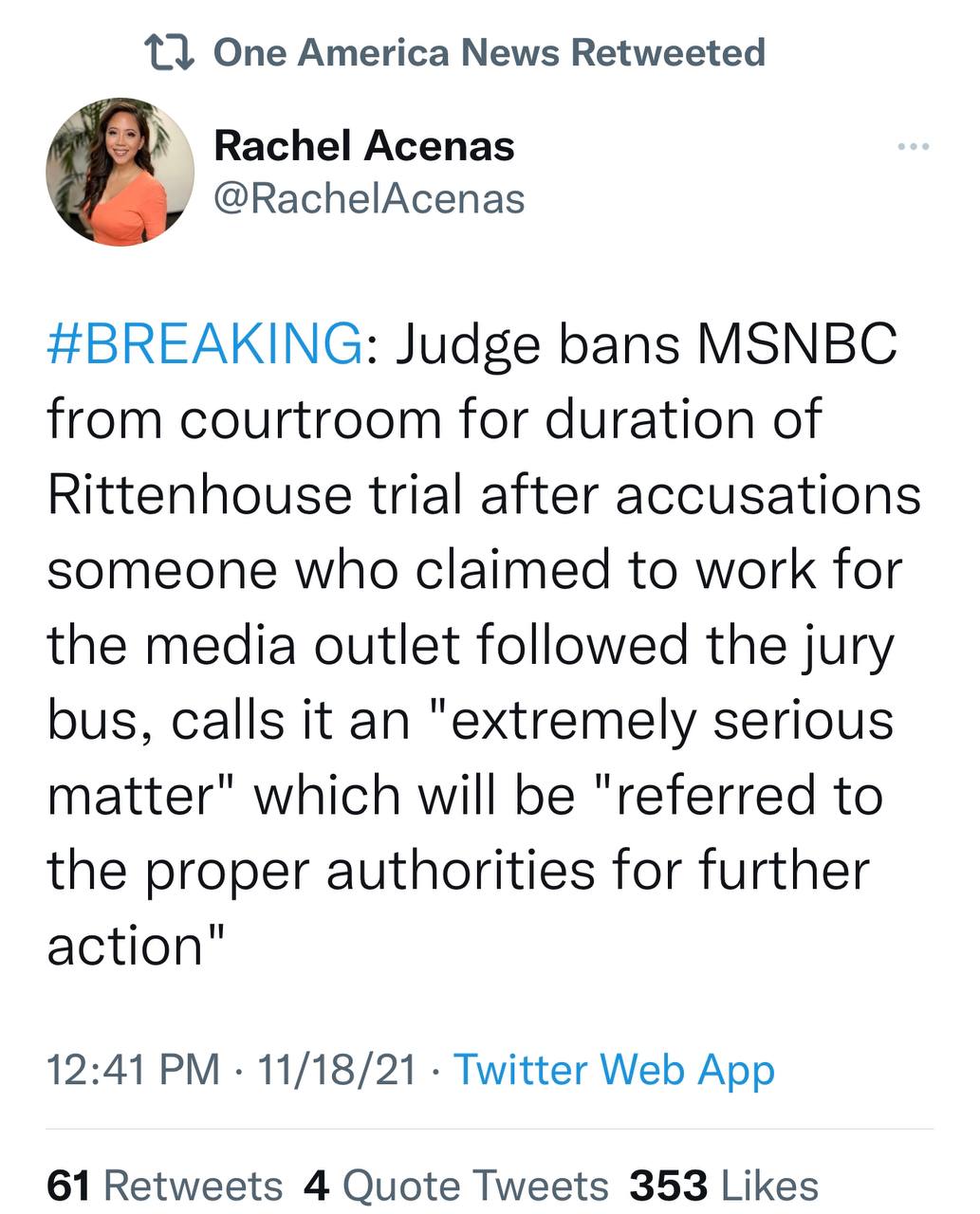 MSNBC has been banned from Kenosha Courthouse for duration of Kyle Rittenhouse trial after employee caught following jury bus