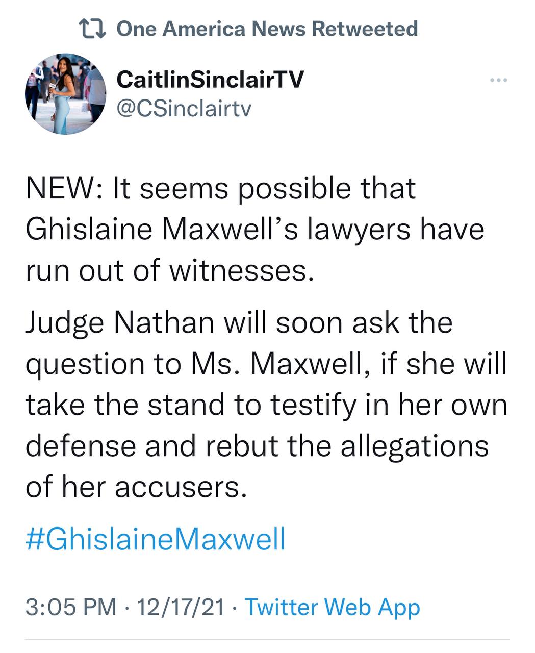 NEW: It seems possible that Ghislaine Maxwell’s lawyers have run out of witnesses.