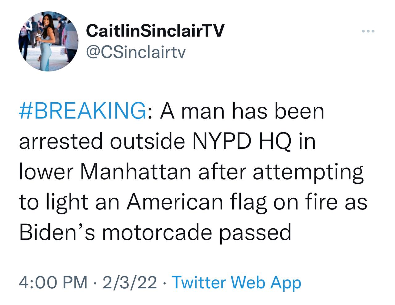 BREAKING: A man has been arrested outside NYPD HQ in lower Manhattan after attempting to light an American flag on fire as Biden’s motorcade passed