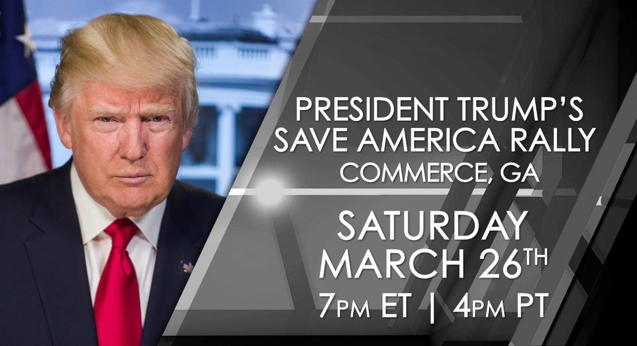 45th President Donald J. Trump is set to host a 'Save America' rally on Saturday March 26th in Commerce, Ga.