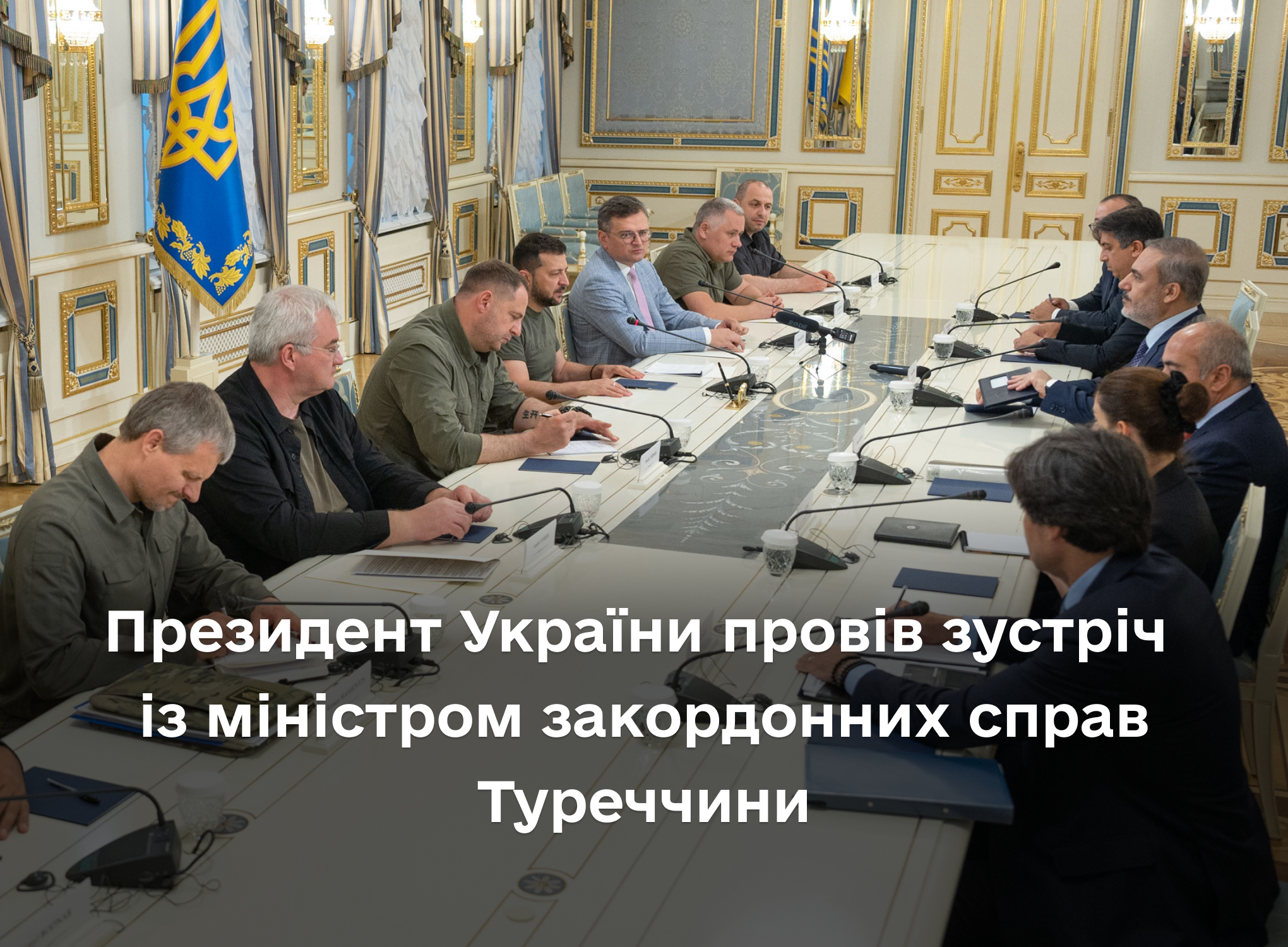 Президент України Володимир Зеленський провів зустріч із міністром закордонних справ Турецької Республіки Хаканом Фіданом, який перебуває в нашій країні з візитом.
