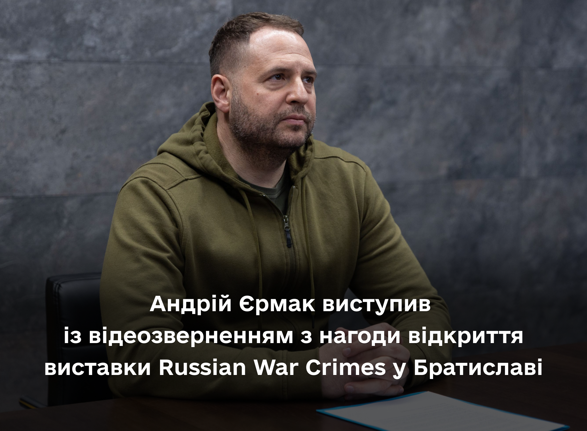 Керівник Офісу Президента України Андрій Єрмак виступив з відеозверненням до гостей, що зібралися на відкриття виставки Russian War Crimes («Російські воєнні злочини») , яке відбулося в замку Братиславський Град (Словаччина) у День Незалежності України, 24 серпня.