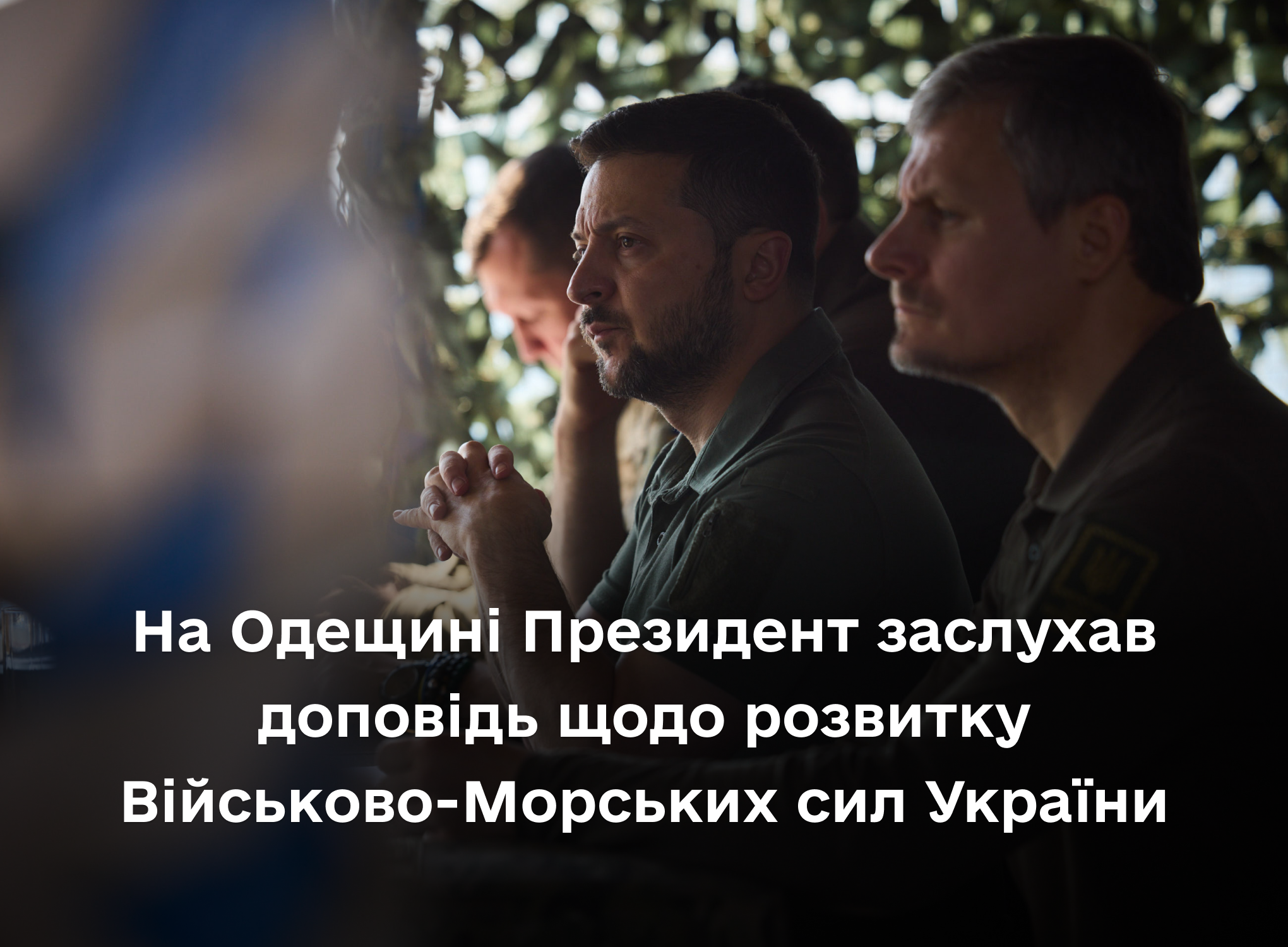 Під час робочої поїздки в Одеську область Президент України Володимир Зеленський заслухав доповідь командувача Військово-Морських сил Збройних Сил України Олексія Неїжпапи.
