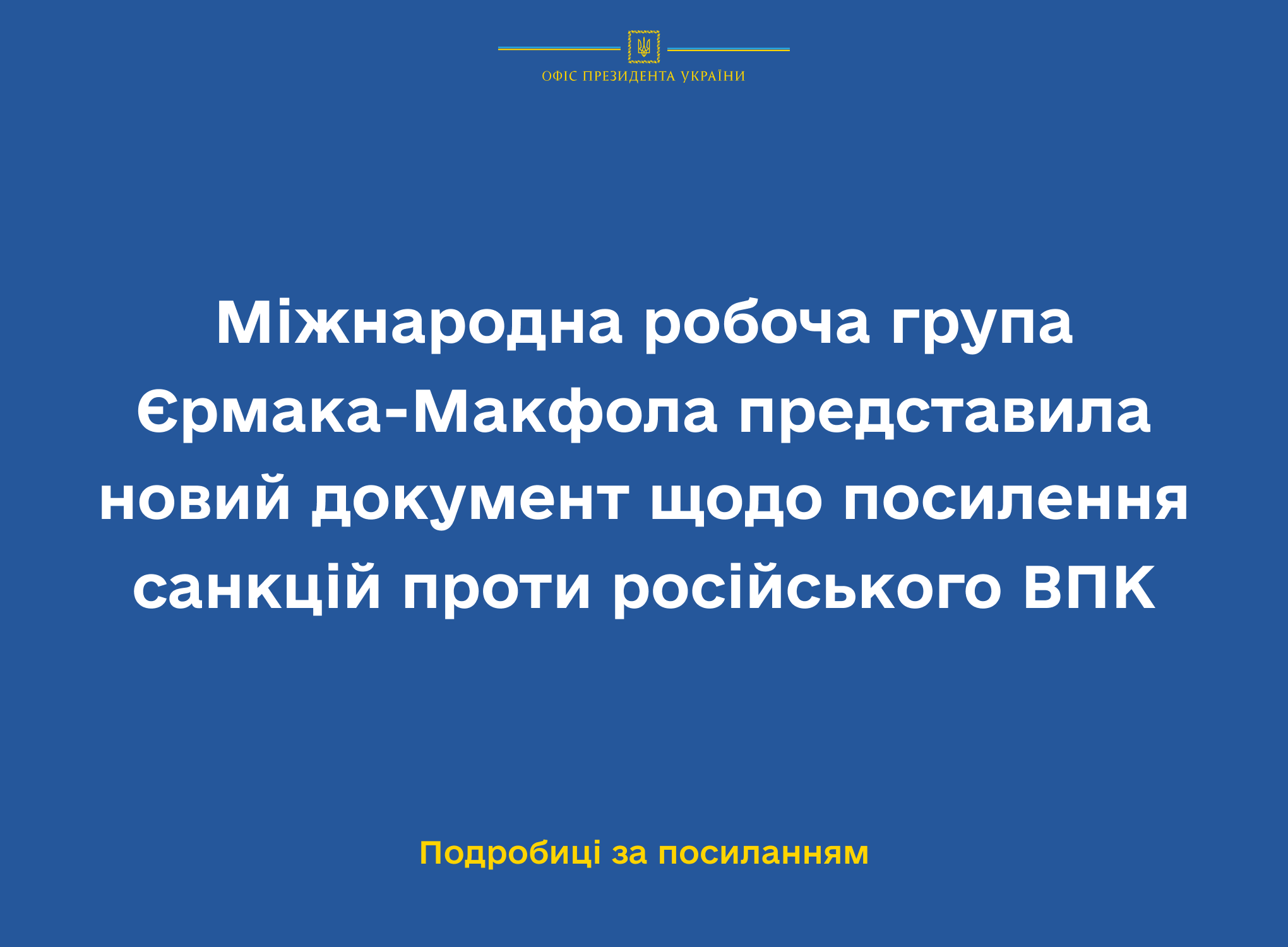 Міжнародна робоча група щодо санкцій проти Росії, яку очолюють керівник Офісу Президента Андрій Єрмак і директор Інституту міжнародних досліджень Фрімана-Споглі (FSI) Посол Майкл Макфол, представила новий звіт (№ 12), спрямований на обмеження доступу російського ВПК до західних технологій.