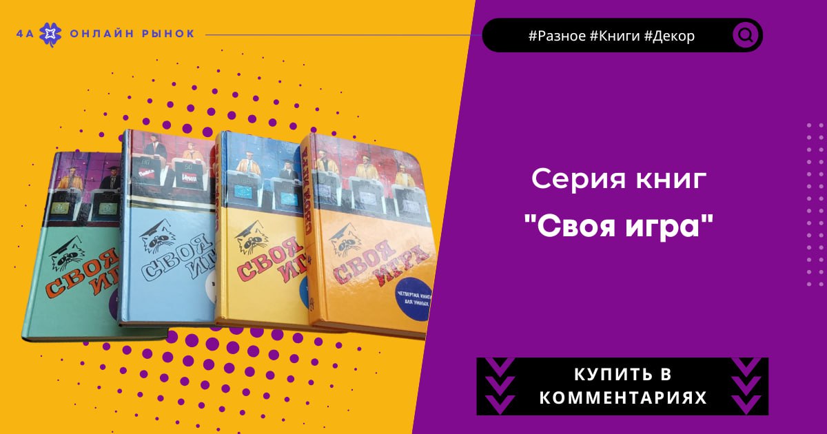 📄 Серия книг из 4 томов "Своя игра" на русском языке, основанная на популярной телевизионной викторине.