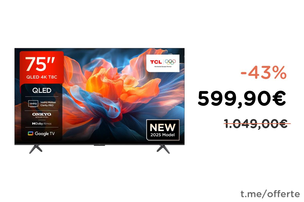 ๐บ TCL 75T8C TV QLED 4K HDR da 75'' con Google TV