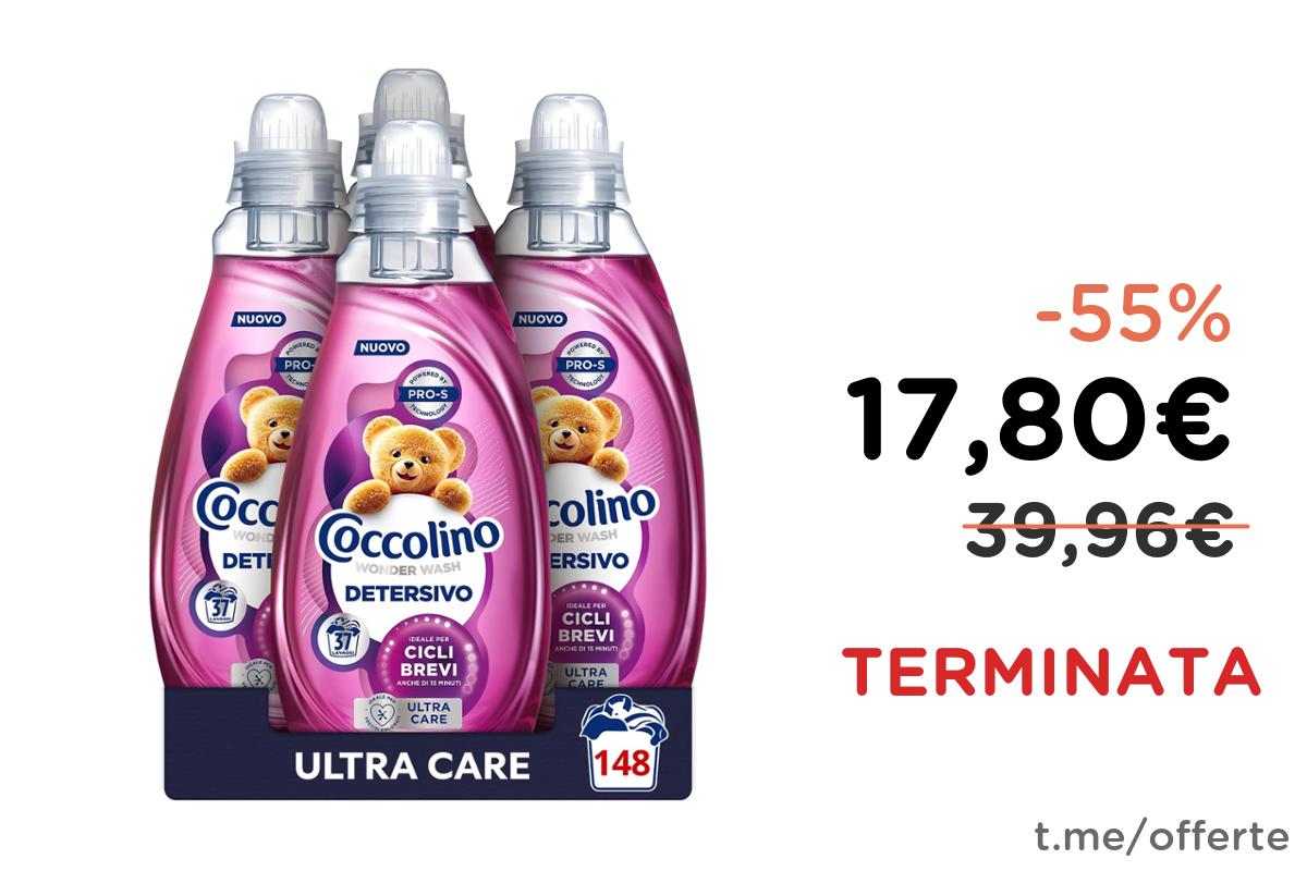 π§΄ Coccolino Wonder Wash Detersivo Lavatrice Liquido, 37 Lavaggi, 4 Pezzi da 1480ml, Efficace a Freddo