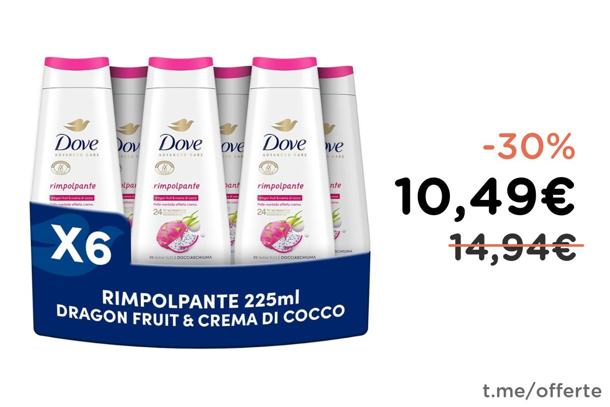 🛁 Dove Docciaschiuma Dragon Fruit & Coconut, 6 Pezzi da 225 ml, Formula Idratante