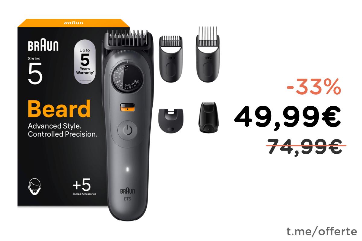 โ๏ธ Braun Regolabarba Uomo Series 5, 120 Min Autonomia, Impermeabile