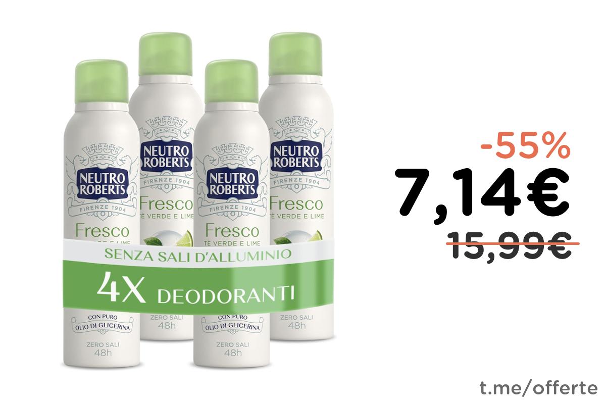 ๐ฟ Neutro Roberts Deodorante Spray Fresco Verde, 4 Pezzi da 150 ml