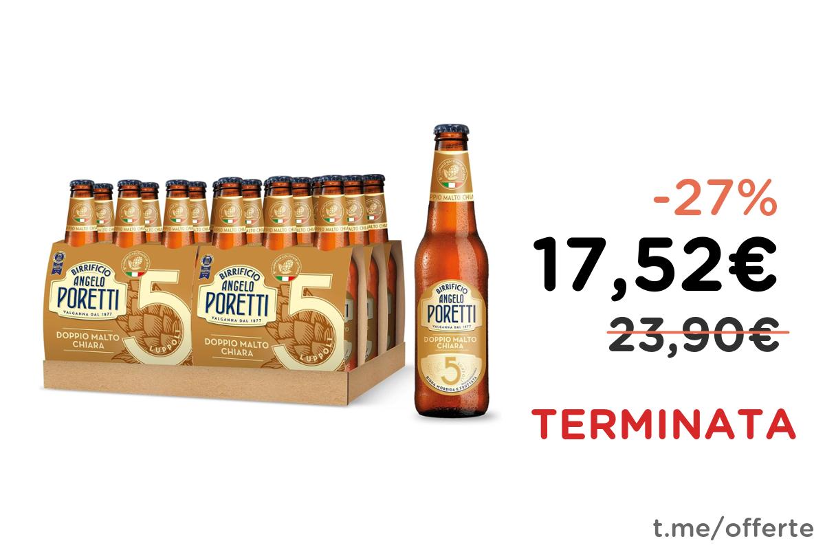 ๐บ Birrificio Angelo Poretti Birra 5 Luppoli Doppio Malto Chiara, 24 Bottiglie da 33cl, Gusto Maltato