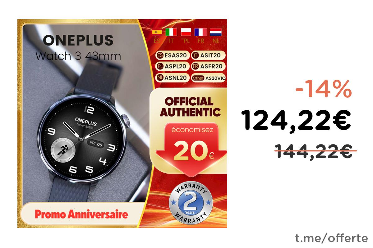 ๐ฅ OnePlus Watch 3 Versione Globale, Smartwatch da 43mm con Display AMOLED da 1,32 Pollici, Processore Snapdragon W5, GPS a Doppia Frequenza, Wear OS