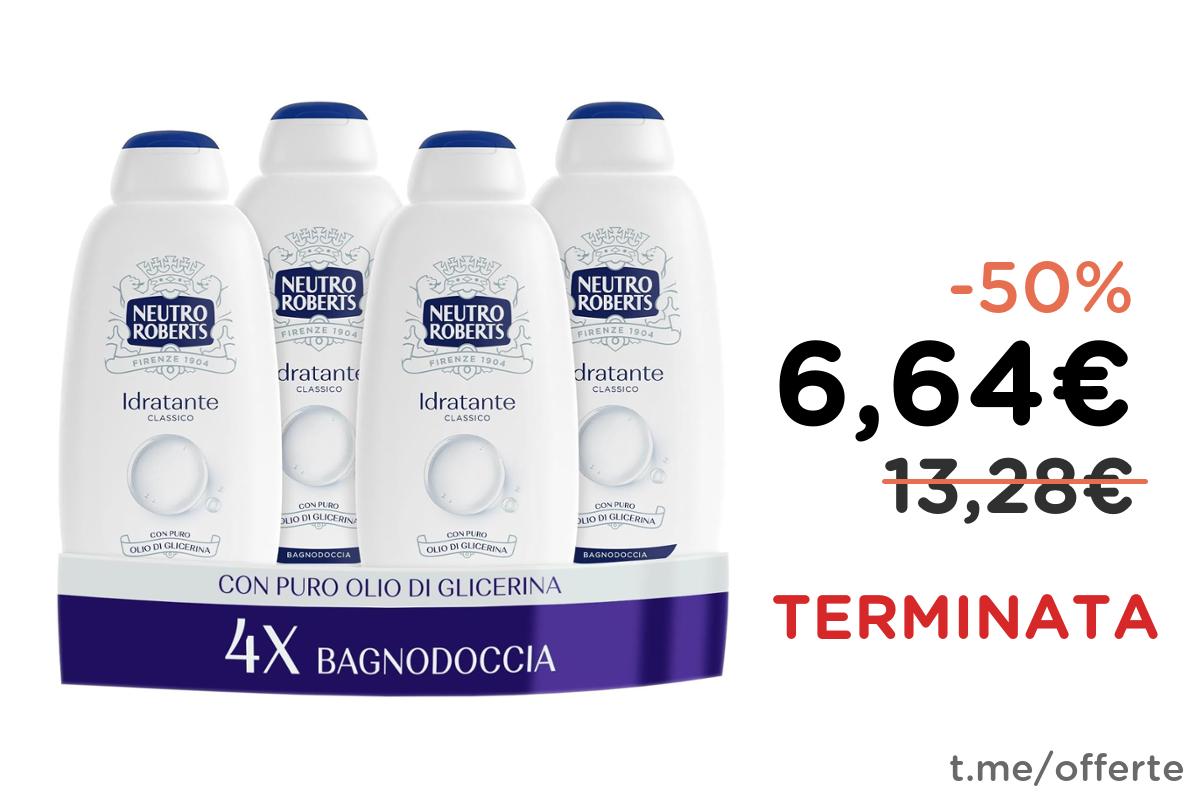 ๐ Neutro Roberts Bagnoschiuma Corpo Idratante 4 Flaconi da 600 ml, con Glicerina