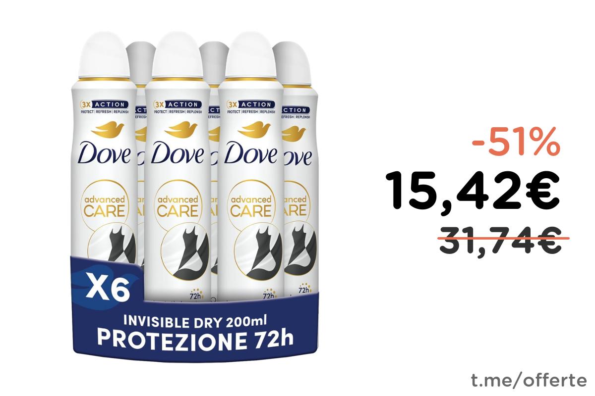 ๐งด Dove Deodorante Spray Advanced Care Invisible Dry, 6 Pezzi da 200ml con Formula Idratante