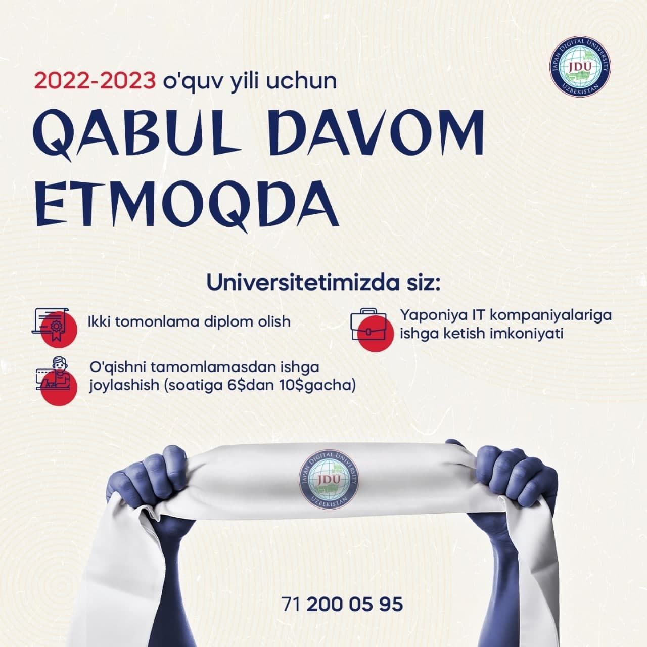 Рўйхатдан ўтиш учун линк: https://www.jdu.uz/enrollee