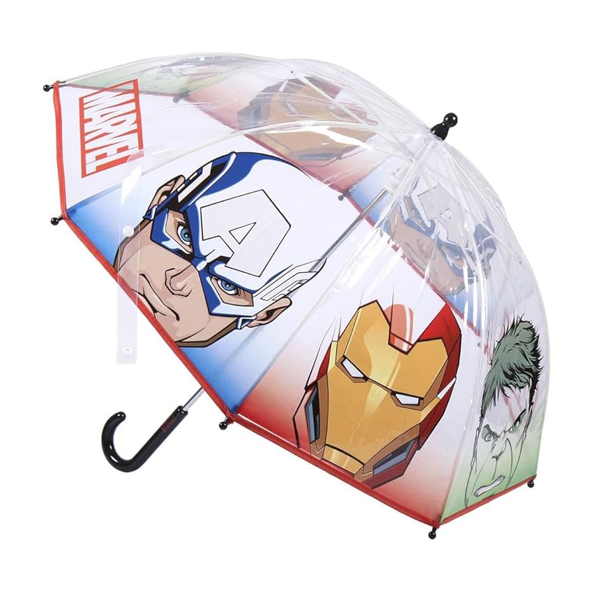 Ombrello Trasparente Bambino,Avengers,Apertura Manuale con Meccanismo Antivento e Aste di Sicurezza,Licenza Ufficiale Marvel,Multicolore