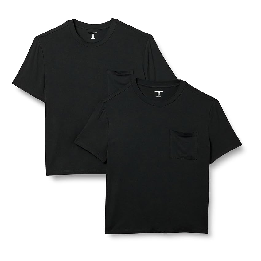 Amazon Essentials T-Shirt con Tasca Girocollo a Maniche Corte con vestibilità Comoda in Jersey Donna