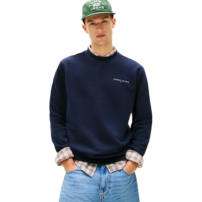Tommy Jeans Felpa da Uomo Tjm Reg Linear Crew Ext Dm0Dm20249, Blu (Dark Night Navy/Sweet Blue)