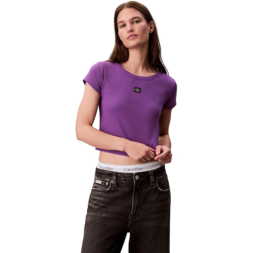 Calvin Klein Donna T-Shirt Maniche Corte Woven Rib Baby Tee Corta