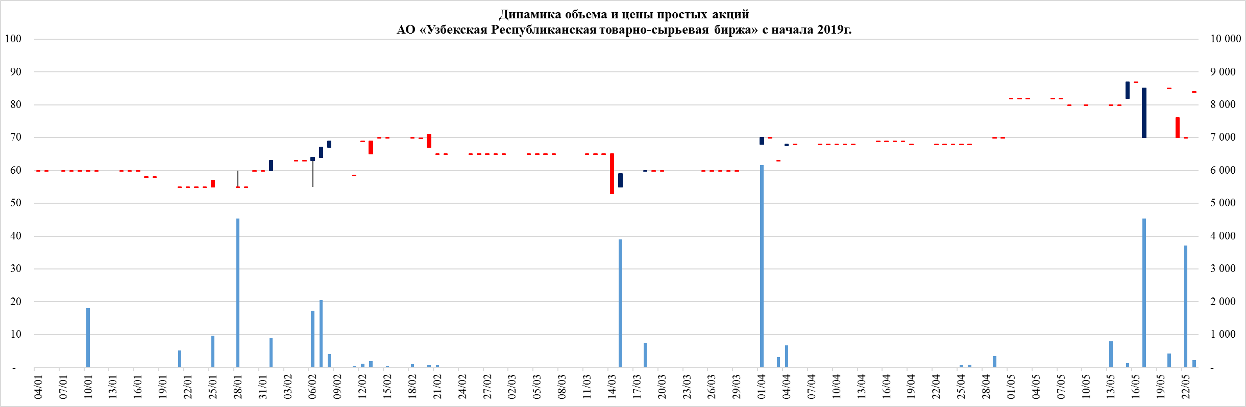 Цены на простые акции АО «УзРТСБ» на конец дня выросли на отметке 8400 сум (URTS). Еще пару месяцев назад данные акции торговались по 6000 сум и ниже.