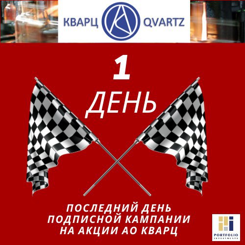 🔔 Осталось 3️⃣ рабочих дня до конца подписки на акции АО Кварц 🔔