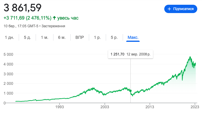 Это банкротство сравнивают с тем что произошло 15 сентября 2008 года(крах Lehman Brothers). Обращаю внимание на график S&P 500, в сентябре 2008-го. Падение главного индекса продолжалось до середины марта 2009-го и индекс в процессе потерял -40%(сколько бы потерял биткоин, если бы существовал в тот момент, страшно представить).
