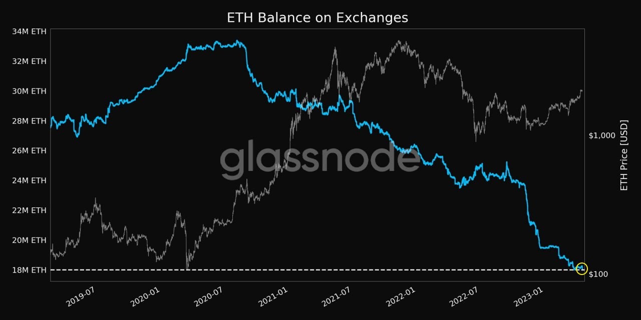 Из хорошего также, Santiment сообщает что крупные кошельки BTC начали активно накапливать монеты за последние 2 дня, а Glassnode говорит что продолжается вывод ETH с централизованных бирж, а баланс на биржах упал до минимума 4 года(на изображении)